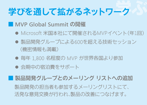 Microsoft MVPのブランドを世の中に広めていくために、様々な広報活動や啓蒙活動、MVPを目指す技術者へのサポートなどを行っている。